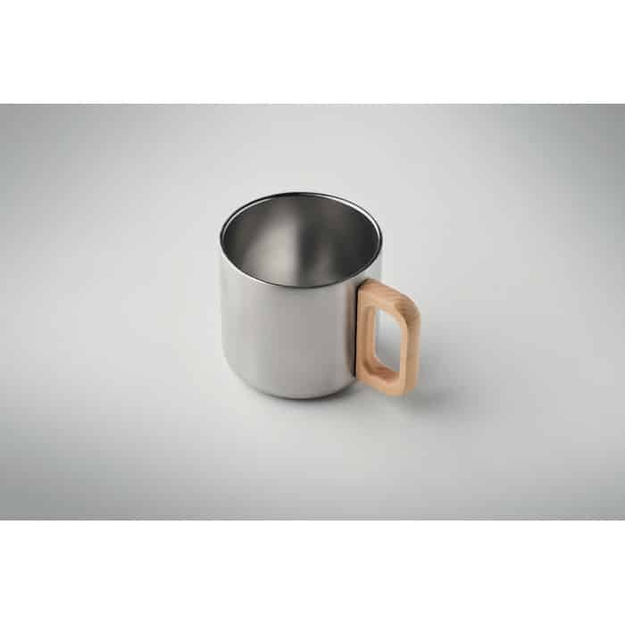 Le mug ACERO est conçu en acier inoxydable recyclé (90 %) avec une touche de bois sur la poignée, offrant un style naturel et contemporain. Sa double paroi garantit une excellente isolation thermique, idéale pour conserver vos boissons chaudes ou froides. Avec une capacité de 350 ml, il s’adapte parfaitement à un usage quotidien.