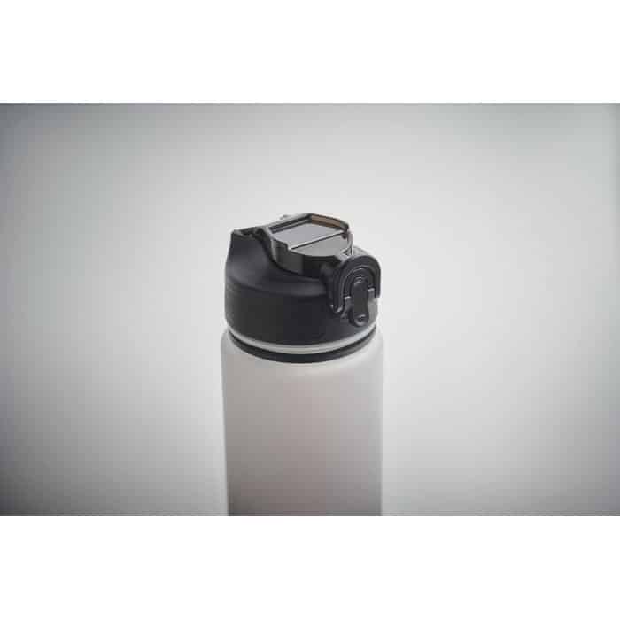 Idéale pour les salons professionnels, événements corporate ou programmes de fidélisation, cette bouteille personnalisable offre un confort optimal grâce à son embout en silicone souple et son ouverture à clapet pratique, utilisable d’une seule main. Elle est équipée d’un verrou de sécurité et d’une sangle pour un transport aisé, favorisant une utilisation quotidienne.