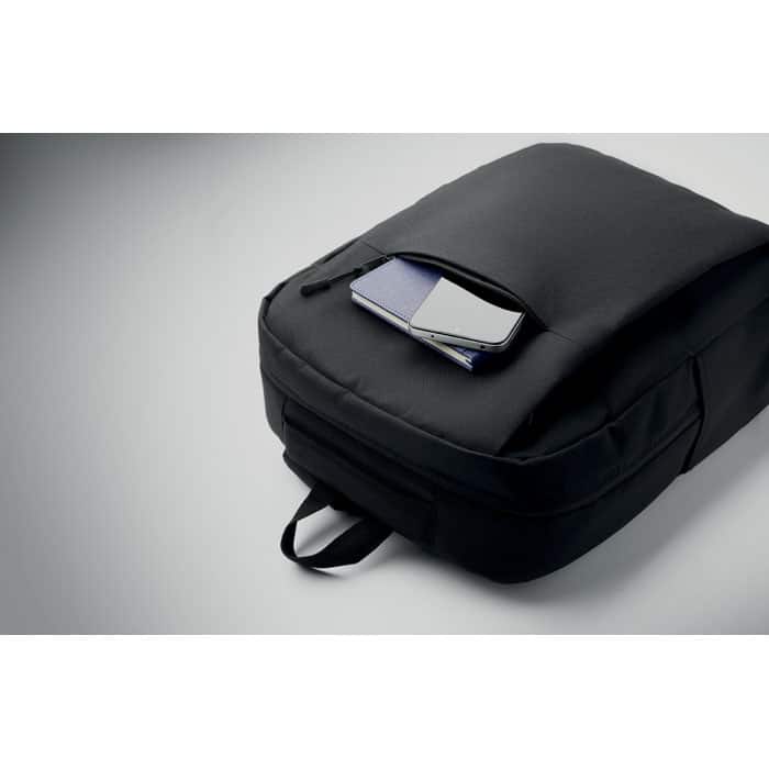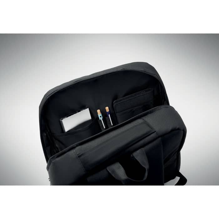 Le sac à dos AKRAOS est conçu en polyester 600D RPET avec une doublure 210D, offrant une durabilité et un aspect éco-responsable. Son design slim intègre un compartiment dédié pour ordinateur portable jusqu’à 15 pouces, un emplacement extérieur zippé pour tablette de 10 pouces ainsi que plusieurs poches internes et externes pour organiser efficacement les affaires professionnelles.
