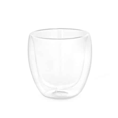 Tasse en verre borosilicaté à double paroi isolée par l’air et d’une capacité allant jusqu’à 220 mL. Livré dans une boîte cadeau personnalisée