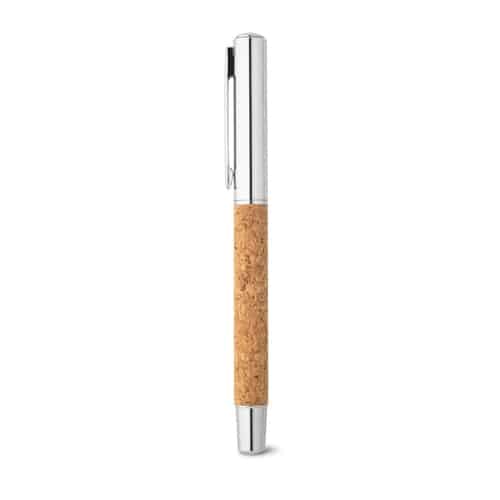Découvrez le roller publicitaire en acier inoxydable et liège, un stylo écologique et élégant pour valoriser votre marque.