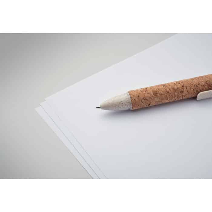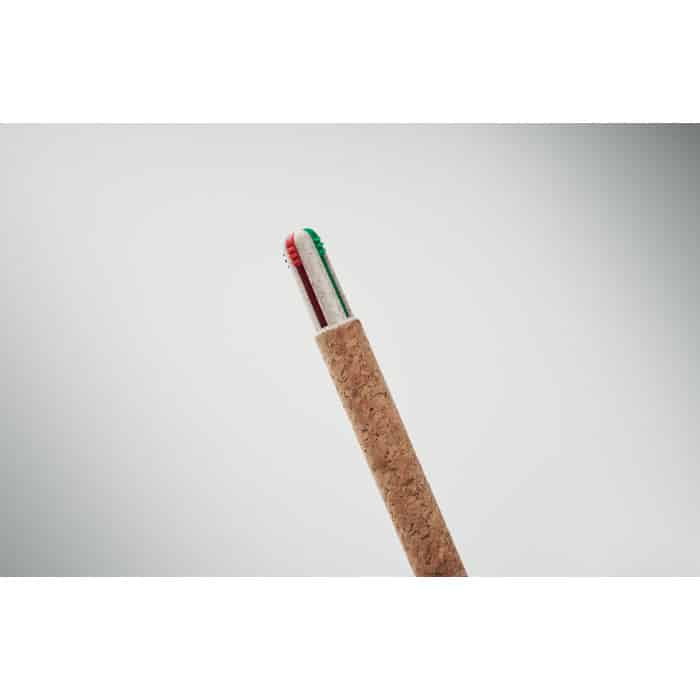 Le stylo ARBOCHO est un objet promotionnel innovant conçu avec un corps en liège naturel et paille de blé (50%), associé à des éléments en plastique ABS (50%). Ce stylo à bille à boutons-poussoirs propose une encre 4 couleurs, offrant une grande polyvalence d’écriture. Il permet une personnalisation logo discrète et élégante, idéale pour renforcer l’image de marque de votre entreprise tout en véhiculant un engagement écologique.