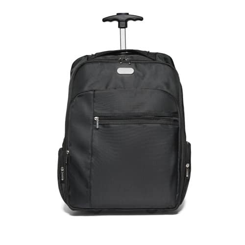 Sac à dos à roulettes pour ordinateur portable qui combine la dualité d’un sac à dos et d’un trolley, facilitant le transport tout en garantissant un rangement spacieux et bien réparti. Comprend une plaque métallique amovible avec un aimant pour une personnalisation facile. Plaque gravée au laser fournie séparément du trolley.