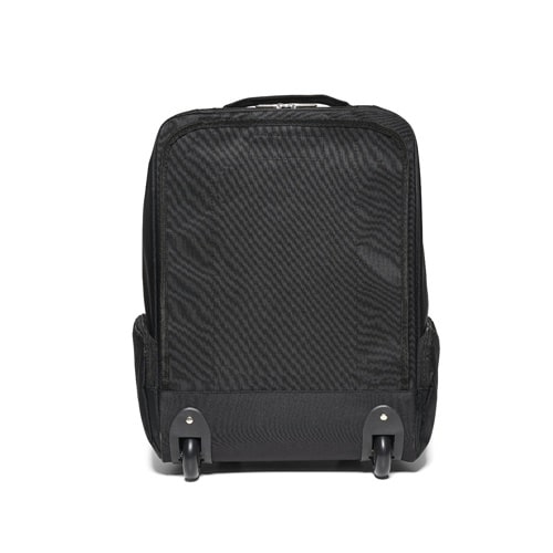 Facilité de transport grâce à sa poignée métallique extensible et ses roulettes équipées d’une protection rembourrée. Le sac est idéal pour les professionnels en déplacement lors de salons, conférences ou rendez-vous clients. Son unique compartiment principal spacieux et ses quatre poches extérieures zippées permettent d’organiser documents, accessoires et objets personnels en toute simplicité.