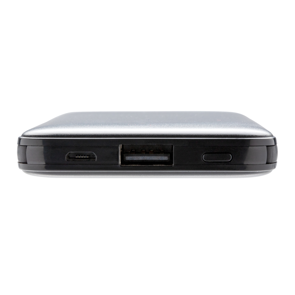 Cette batterie de secours 5000 mAh compacte en ABS léger se glisse aisément dans une poche ou un sac, offrant une solution de recharge pratique et rapide. Équipée d’un câble 3 en 1 compatible avec tous les téléphones du marché (USB, type-C et Lightning), elle garantit une grande polyvalence pour vos collaborateurs et clients. L’écran LED intégré indique précisément le niveau d’énergie restant, facilitant ainsi la gestion de la recharge.