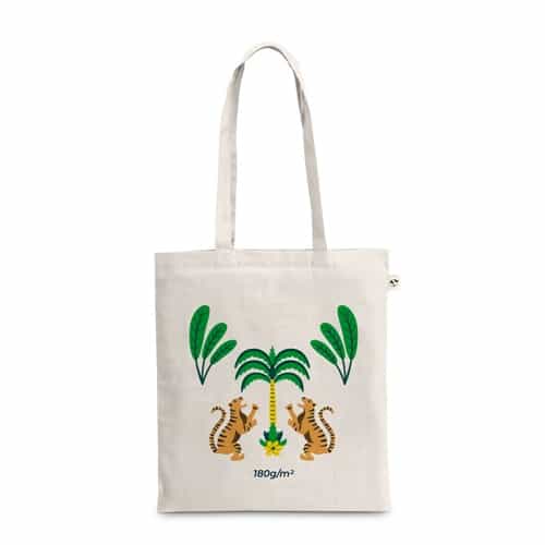Le sac publicitaire personnalisable en coton 100 % recyclé allie écologie et visibilité pour valoriser votre communication.