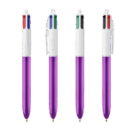 Le BIC® 4 Couleurs Shine est un stylo multifonctionnel doté de quatre couleurs d’encre standard (bleu, noir, rouge et vert), présenté dans un design métallisé brillant qui attire l’œil. Sa conception améliore la durabilité en réduisant de 13 % la quantité de plastique dans sa partie supérieure. Ce stylo est un véritable symbole de fiabilité et d’innovation, parfait pour véhiculer l’image de votre marque avec style.