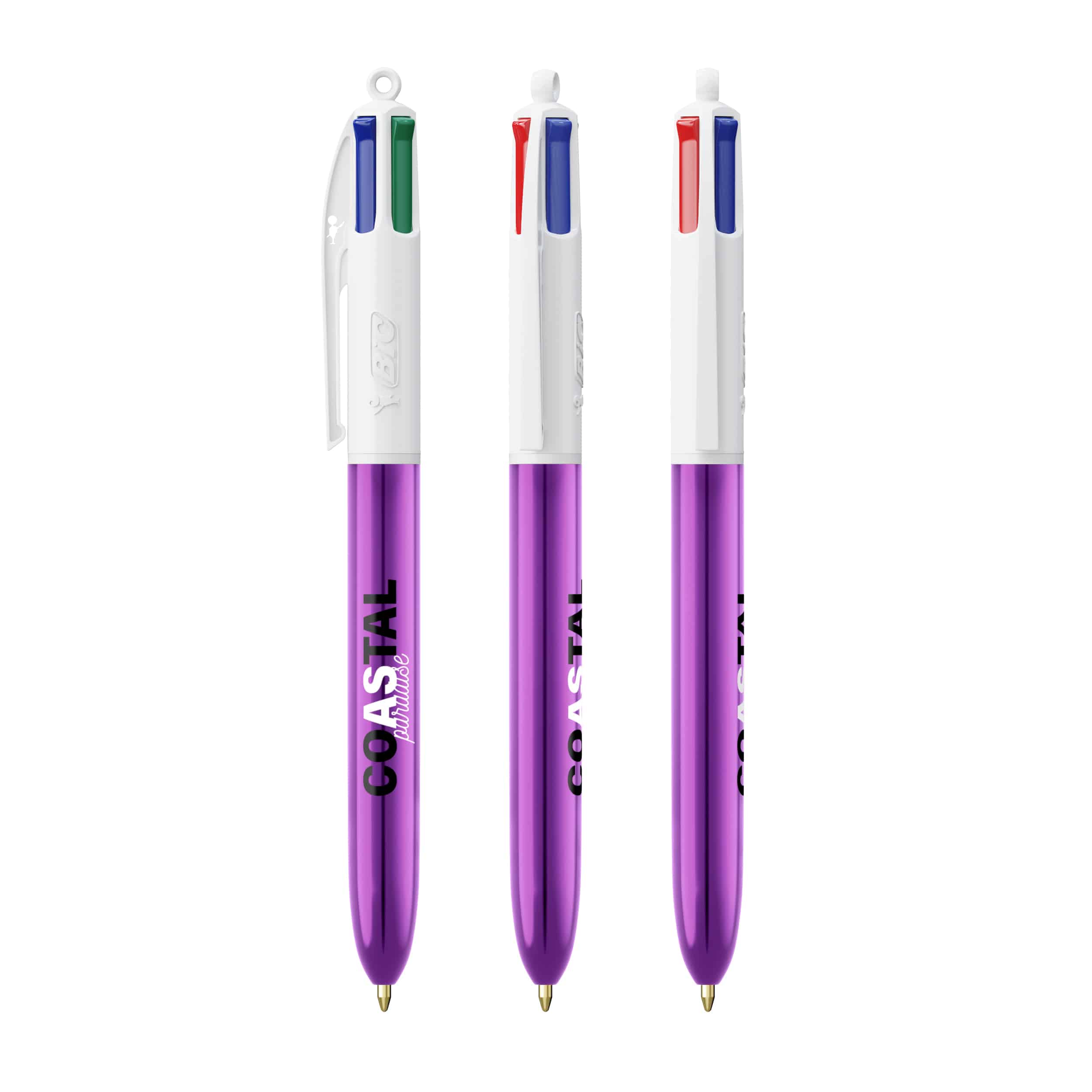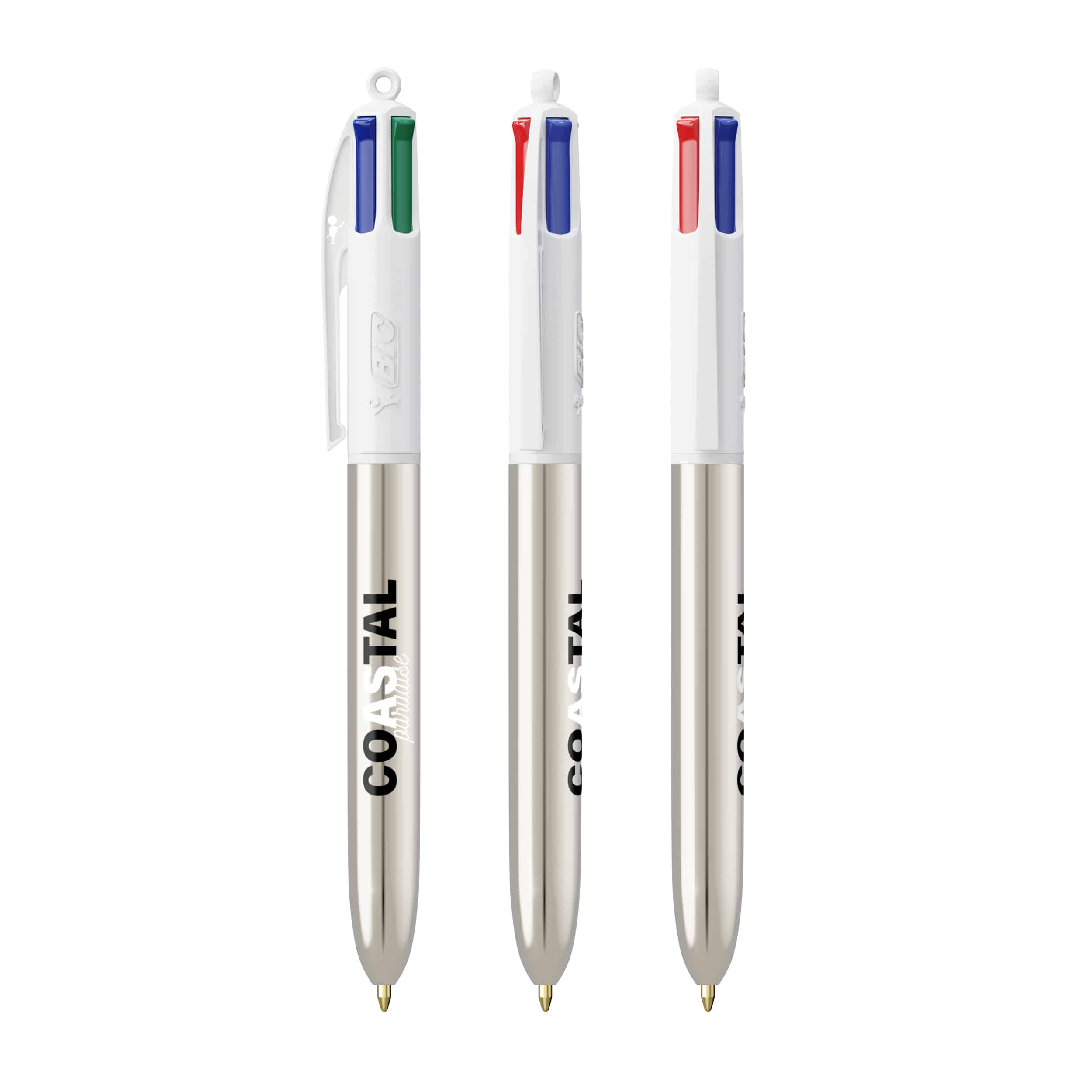 Le stylo BIC® 4 Couleurs Shine bille allie praticité et élégance avec ses couleurs métallisées, idéal pour valoriser votre communication.