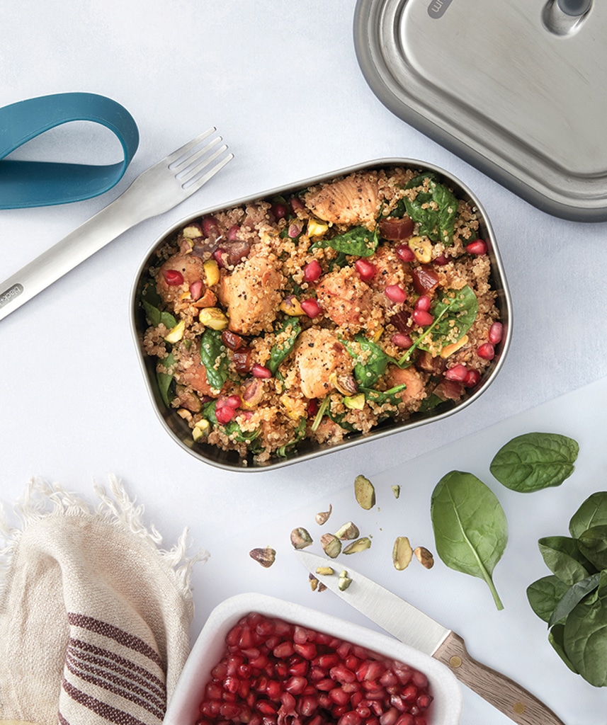 Découvrez la boîte à lunch large en acier inoxydable Black+Blum, un contenant multifonctionnel étanche et résistant, idéal pour vos repas quotidiens.