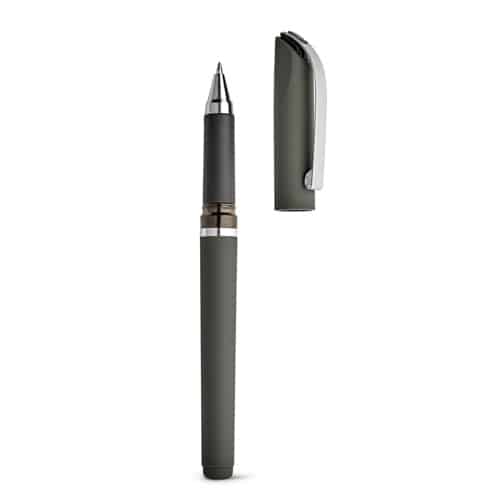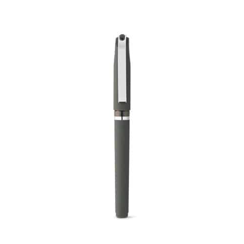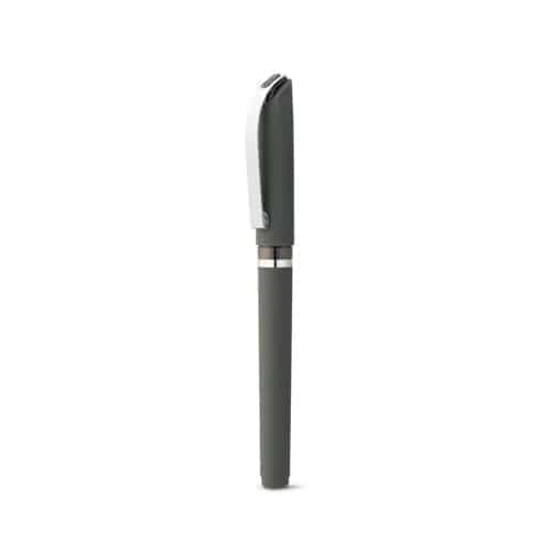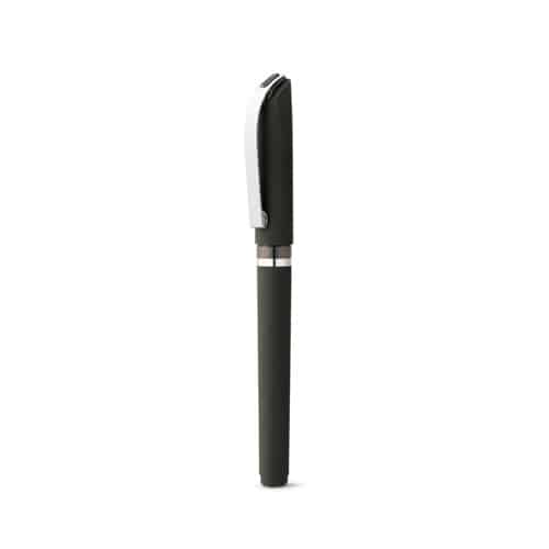 Stylo bille en ABS avec finition en caoutchouc et clip en métal. Roller avec antidérapant et écriture noire. Recharge de gel incluse