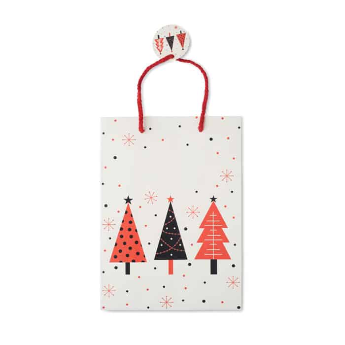 Le sac est conçu pour accueillir divers types de cadeaux medium et est livré avec une étiquette intégrée, parfaite pour personnaliser vos offres avec un message ou un nom.