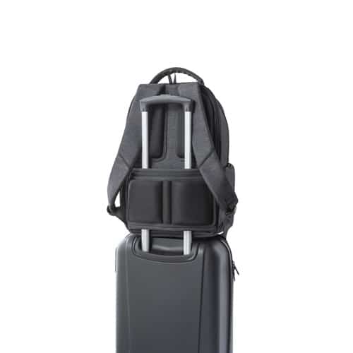Sac à dos imperméable pour ordinateur portable avec poche intégrée sur la sangle du trolley. Protégez vos appareils dans toutes les conditions et en toute sécurité.
