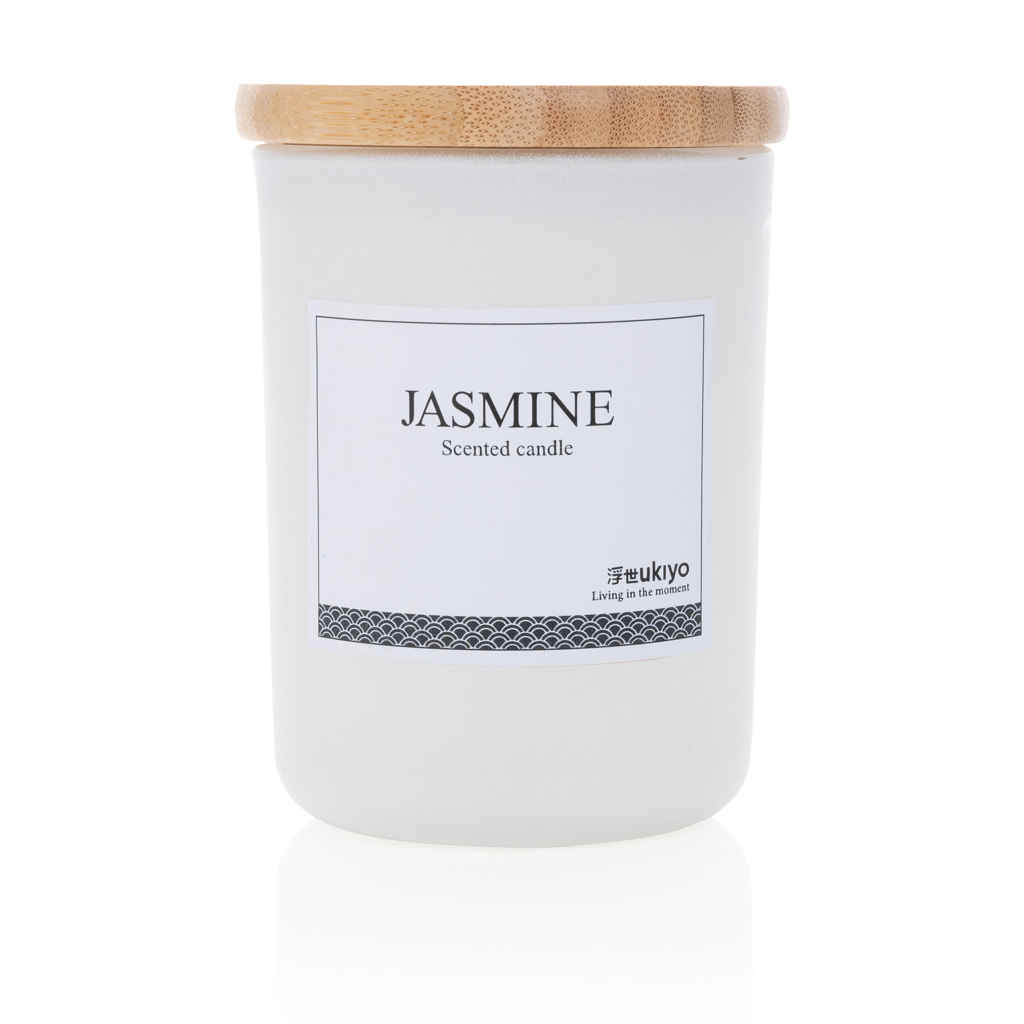 La bougie parfumée Ukiyo se distingue par son pot élégant accompagné d’un couvercle en bambou, alliant esthétique naturelle et qualité. Son parfum délicat de jasmin crée une ambiance apaisante, idéale pour valoriser vos espaces de travail ou événements.