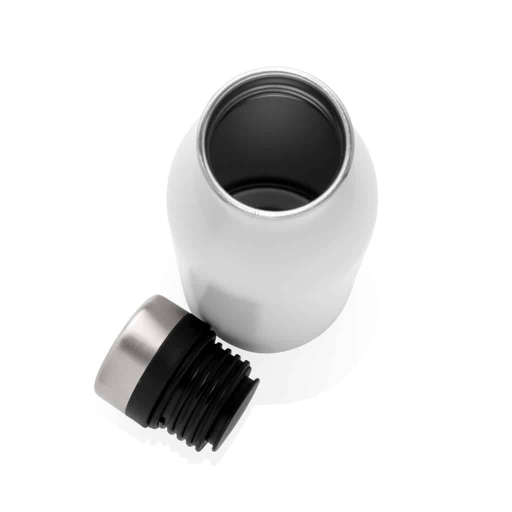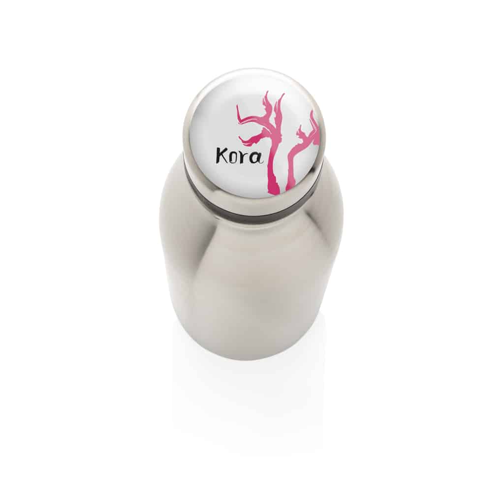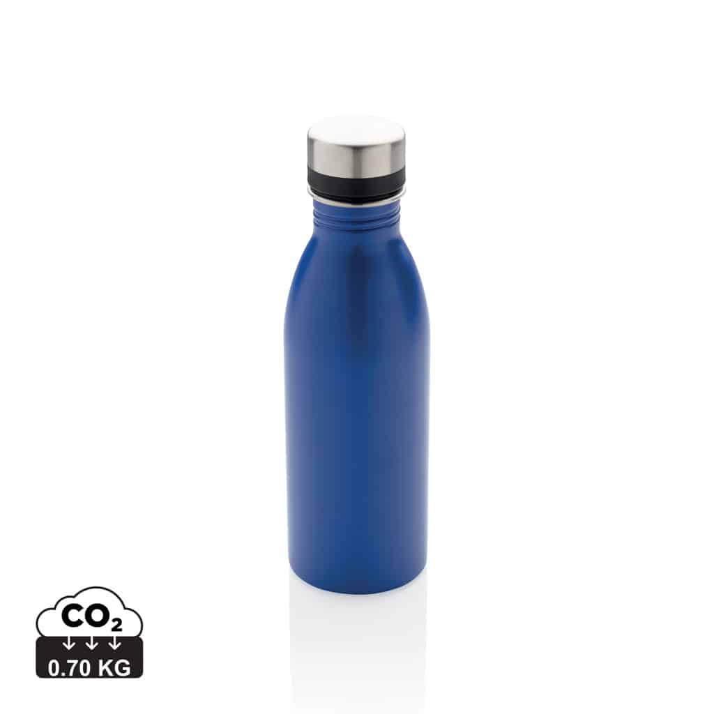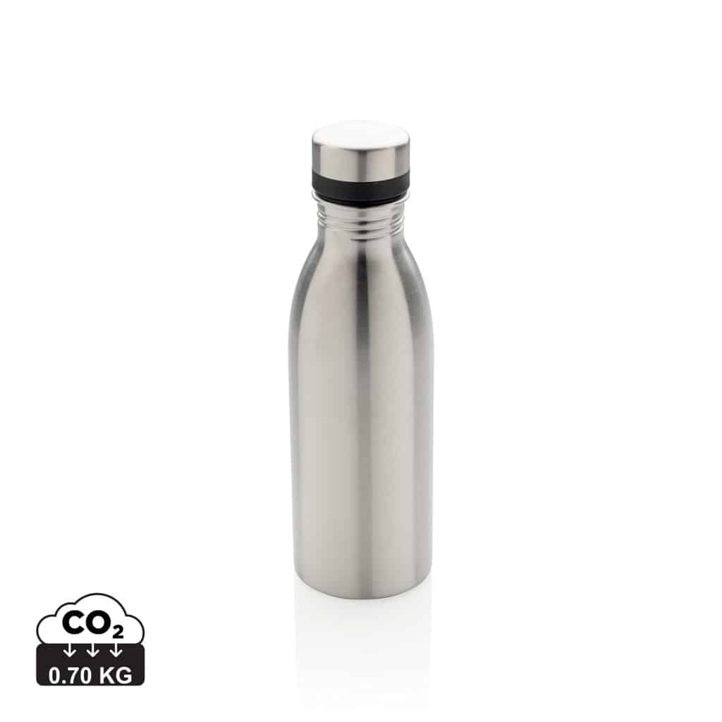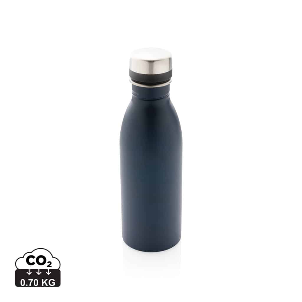 Cette bouteille réutilisable de 500 ml est conçue en acier inoxydable 18/8 recyclé, garantissant robustesse et légèreté. Son étanchéité parfaite la rend adaptée au transport quotidien, tout en assurant une utilisation recommandée pour l’eau froide uniquement. Fabriquée à partir de matériaux recyclés certifiés Recycled Claim Standard (RCS), elle contient 80% de contenu recyclé, témoignant de votre engagement en faveur de l’environnement. Sans BPA, elle préserve la qualité de vos boissons et respecte la santé de vos collaborateurs et clients. L’emballage en kraft certifié FSC® complète ce produit éco-conçu, renforçant votre image responsable.