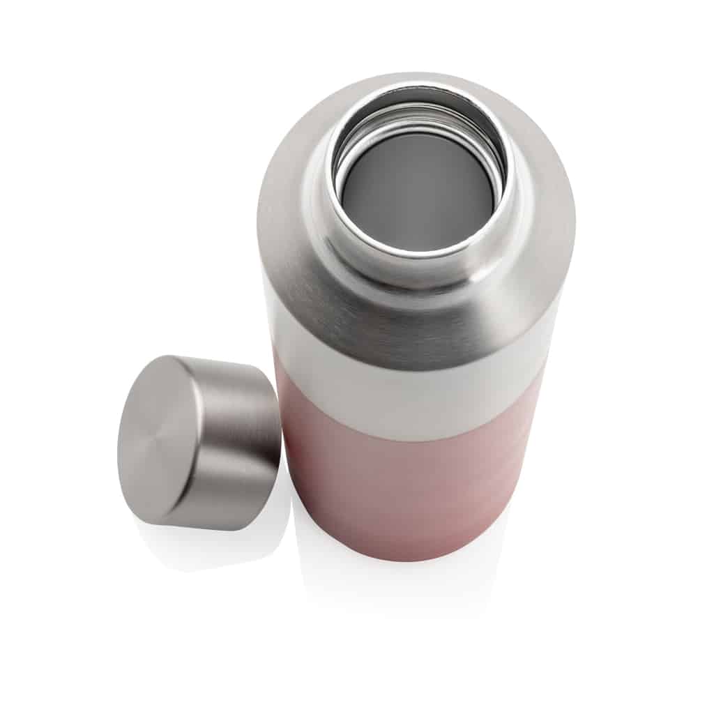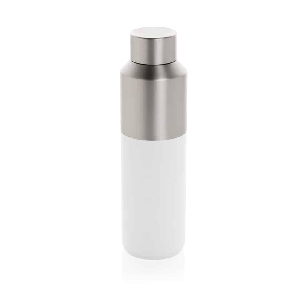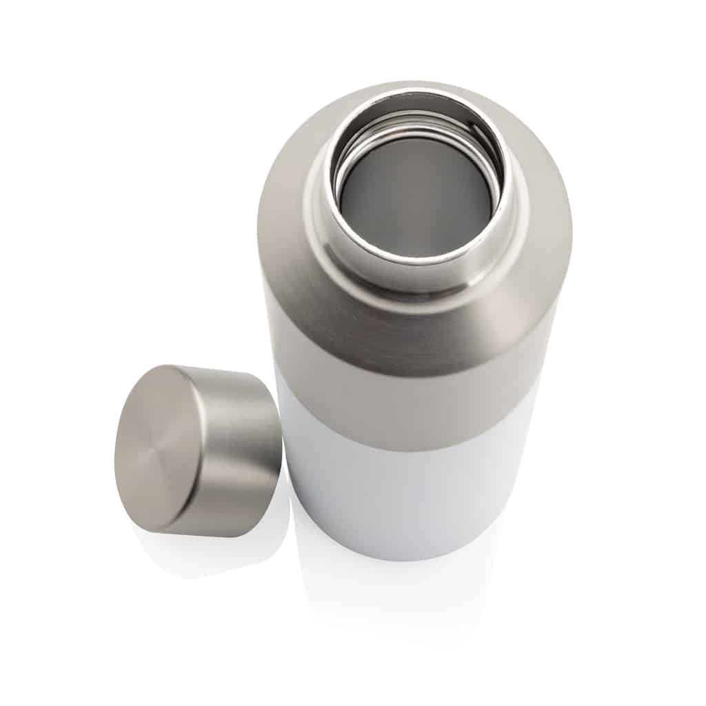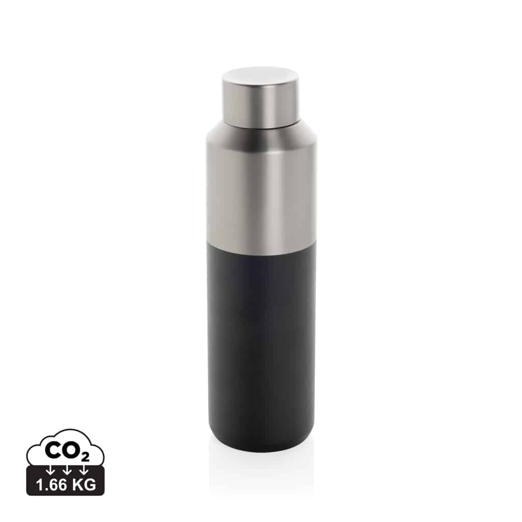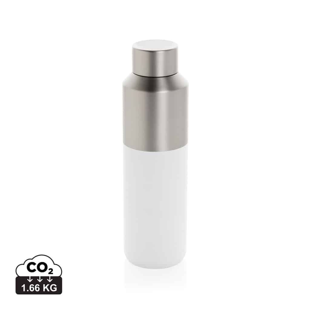 Cette bouteille d'eau 600 ml en acier inoxydable recyclé allie design moderne et respect de l'environnement. Son extérieur bicolore au style moitié-moitié apporte une touche d'originalité tout en renforçant l'image innovante de votre entreprise. Grâce à sa double paroi isolante fabriquée sous vide, elle conserve les boissons fraîches jusqu'à 15 heures et les boissons chaudes jusqu'à 5 heures. Sans BPA, elle garantit une utilisation saine pour tous vos collaborateurs et clients.
