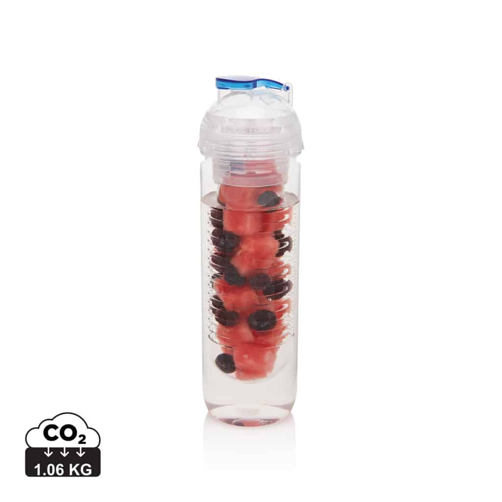 Cette bouteille de 500ml intègre un compartiment à infusion qui vous permet d’agrémenter l’eau avec des fruits frais ou des glaçons pour une boisson saine et rafraîchissante. Idéale pour une hydratation vitaminée, elle combine fonctionnalité et design, offrant un support publicitaire visible et apprécié.