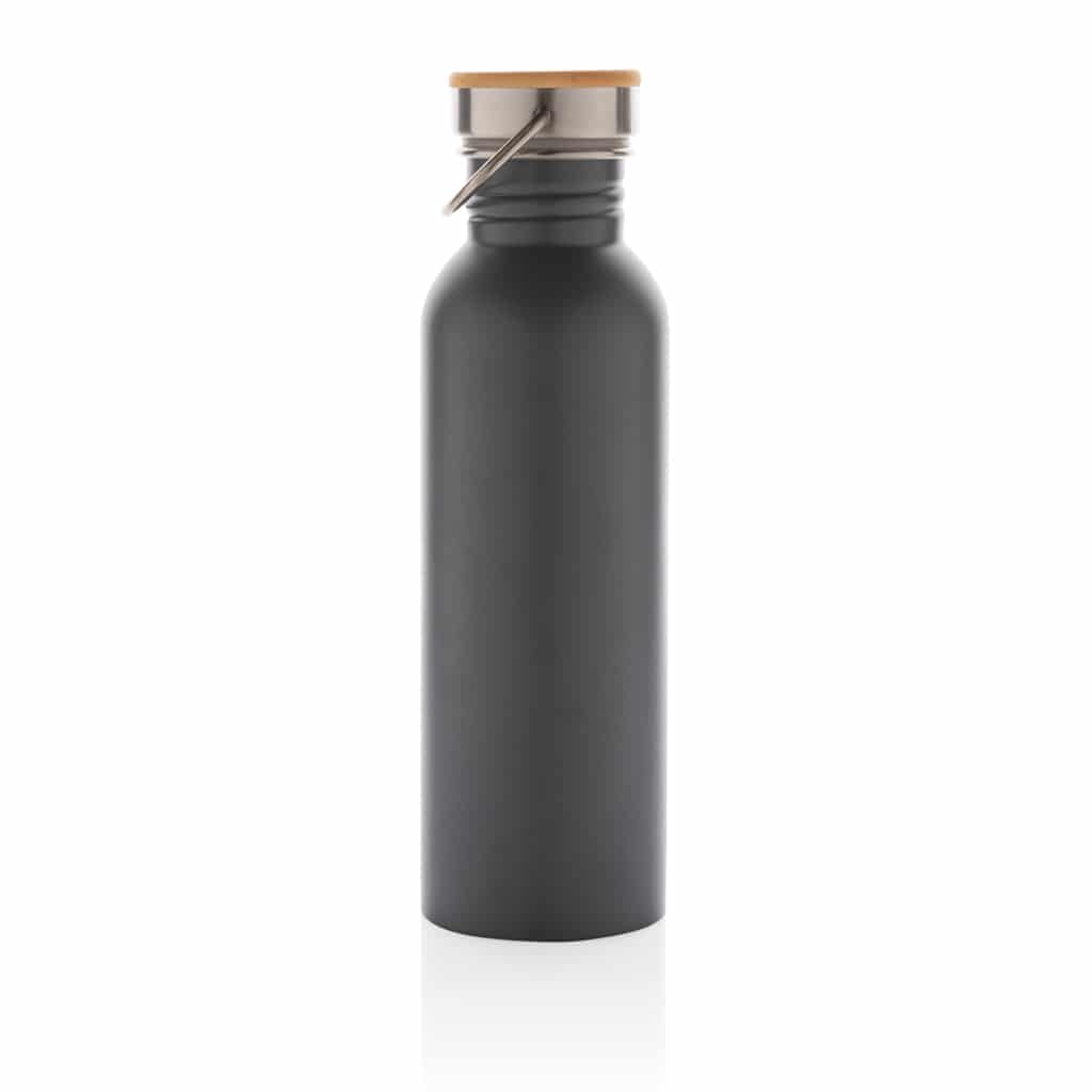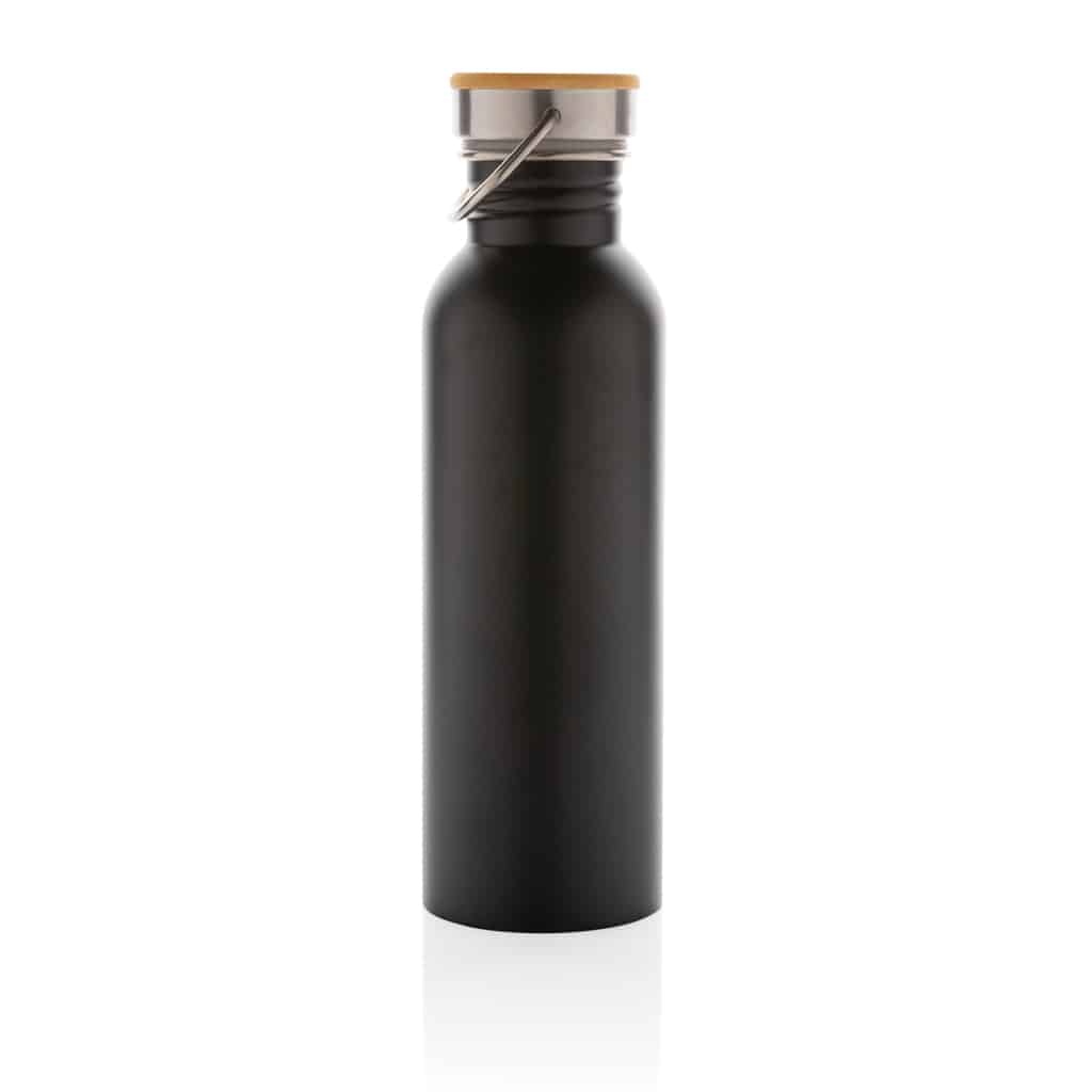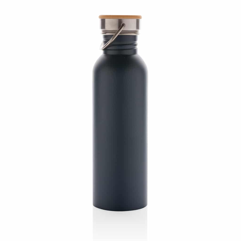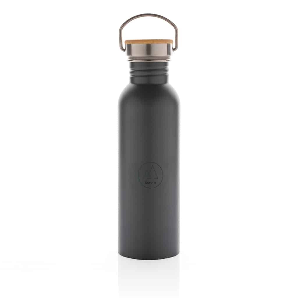Découvrez notre bouteille en acier inoxydable avec couvercle en bambou, un objet publicitaire durable alliant élégance et praticité.
