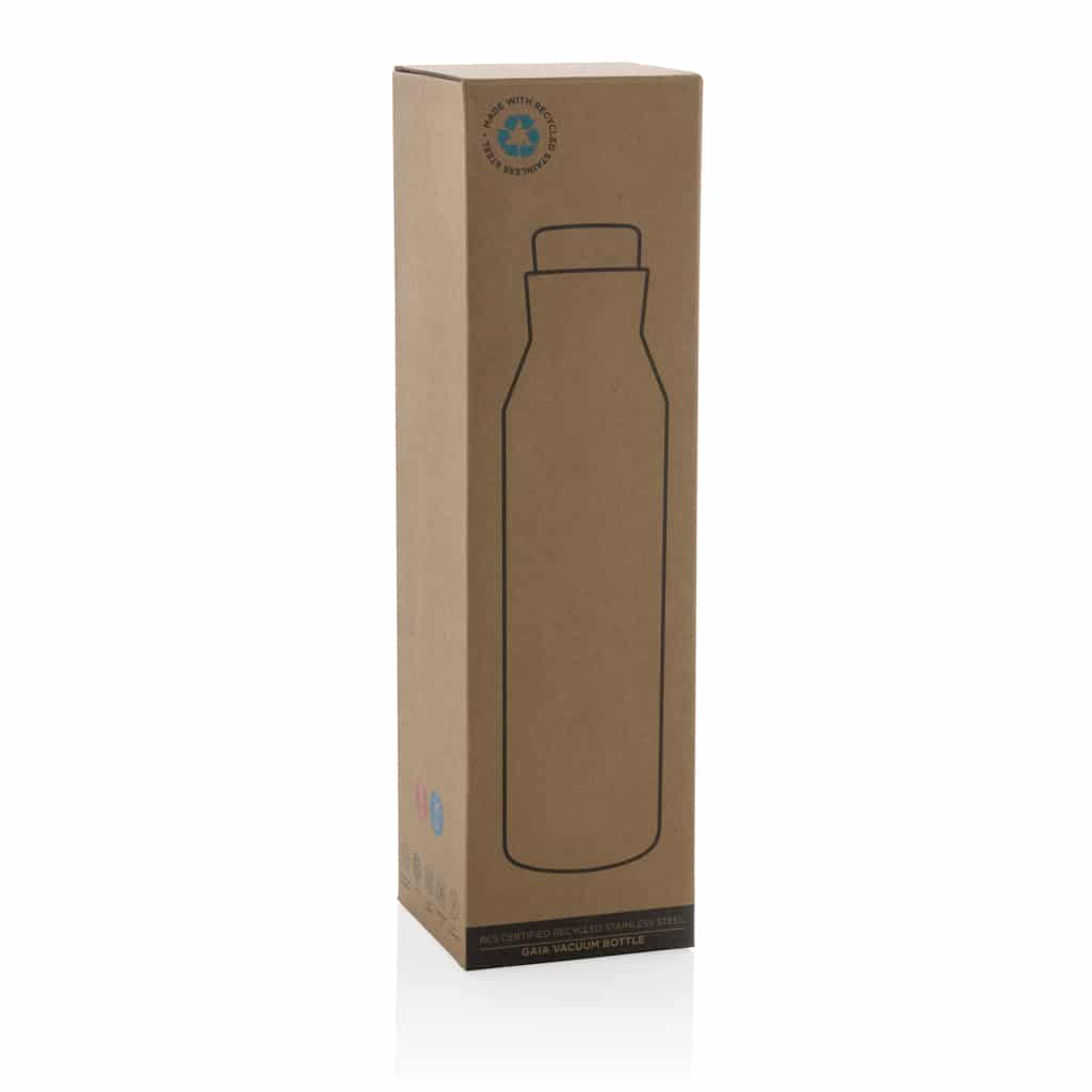 Bouteille iso en acier inoxydable recyclé certifiée RCS Gaia, un objet publicitaire écologique et performant pour valoriser votre communication.