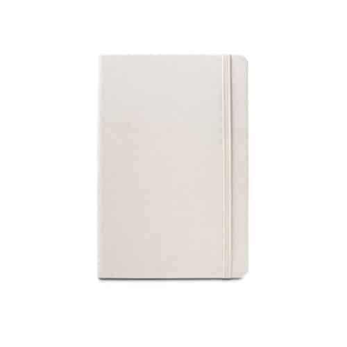 Couverture rigide en polyester recyclé 100% rPET, pages en papier ivoire certifié FSC™ et autres matériaux contrôlés.