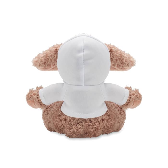 Le peluche est fabriqué en textile doux, habillé d’un sweat à capuche, offrant une surface idéale pour la sublimation, qui permet une personnalisation haute définition et durable.