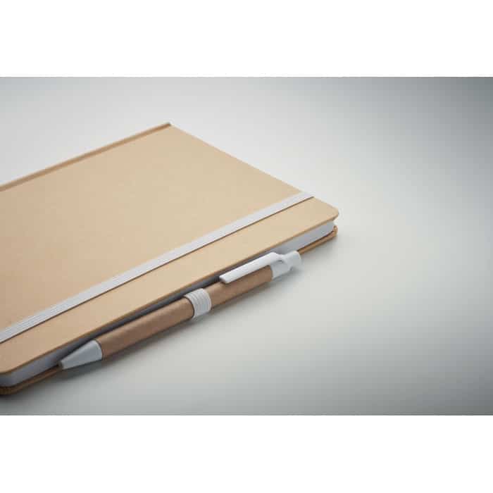 Le carnet CARATIL est un objet publicitaire personnalisable idéal pour véhiculer une image engagée. Sa couverture rigide en carton recyclé et ses 160 pages lignées (80 feuilles en papier recyclé) reflètent une démarche écologique valorisante pour votre marque. Son système de fermeture élastique, son porte-stylo intégré ainsi que son marque-page en ruban assurent un usage pratique et durable au quotidien.