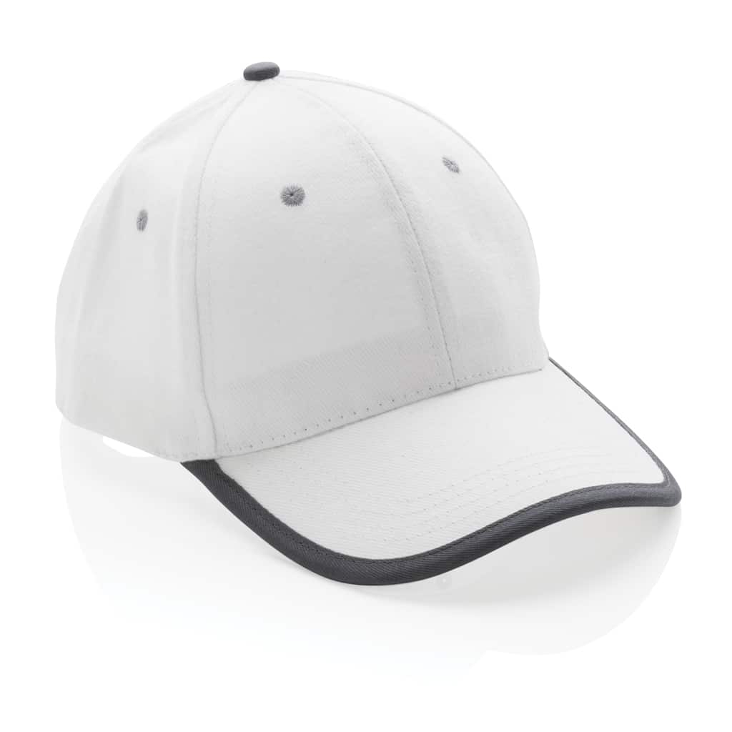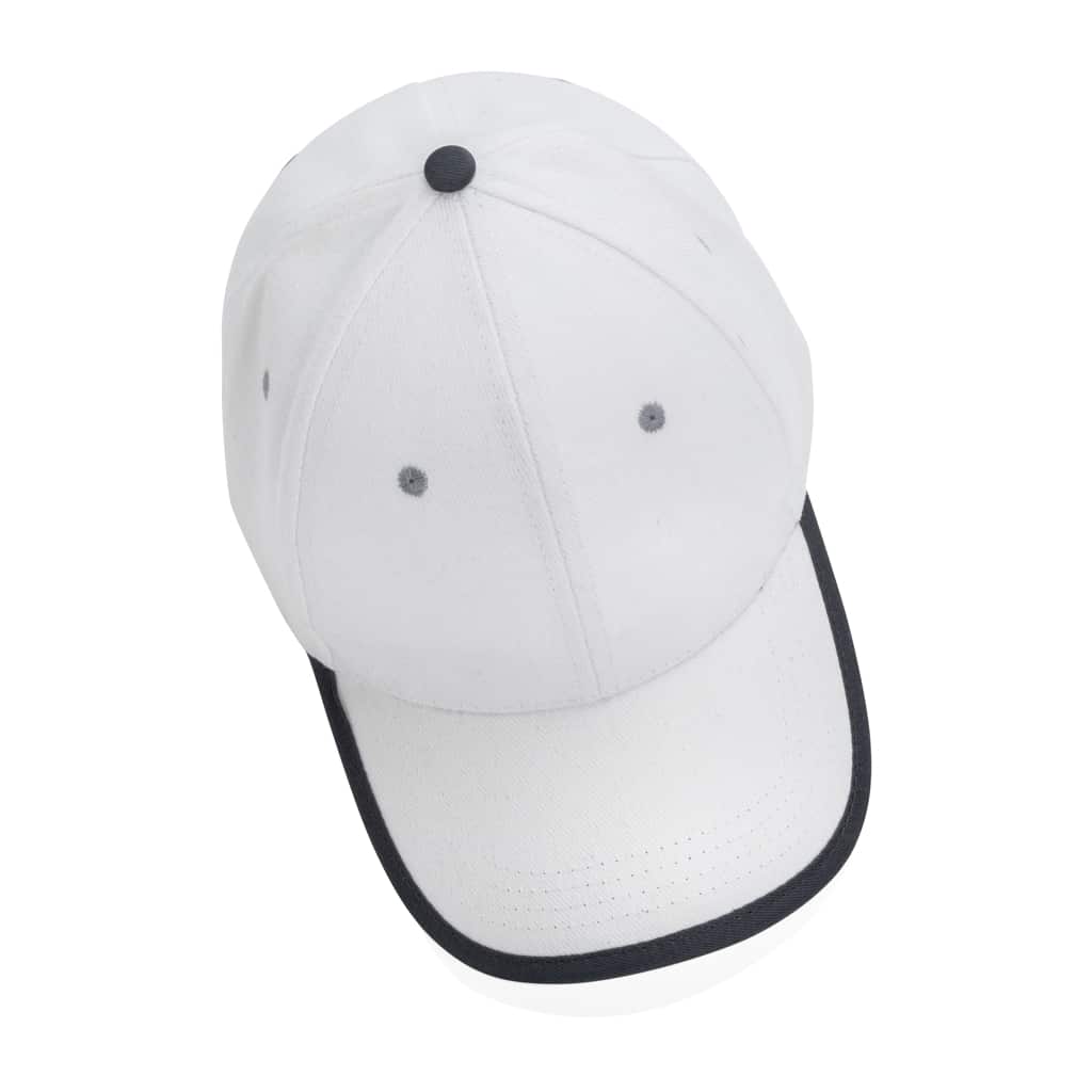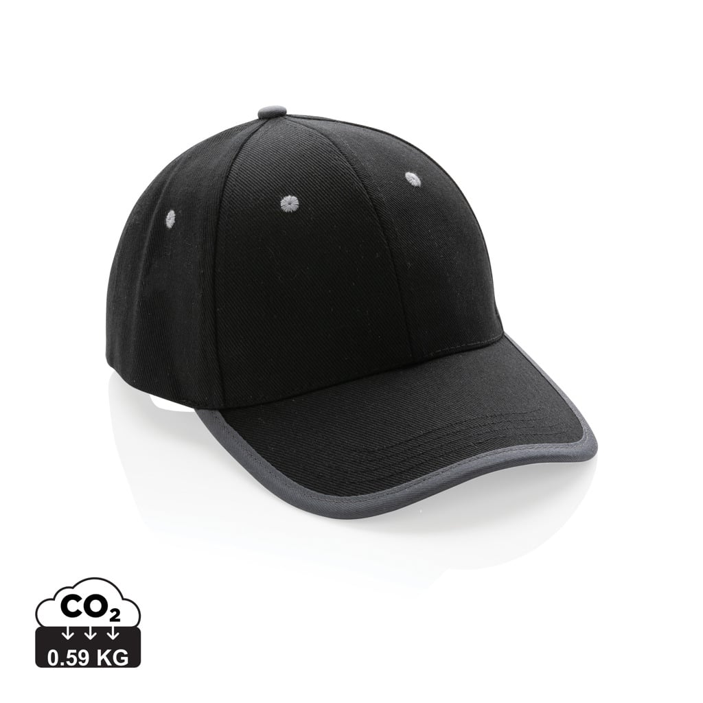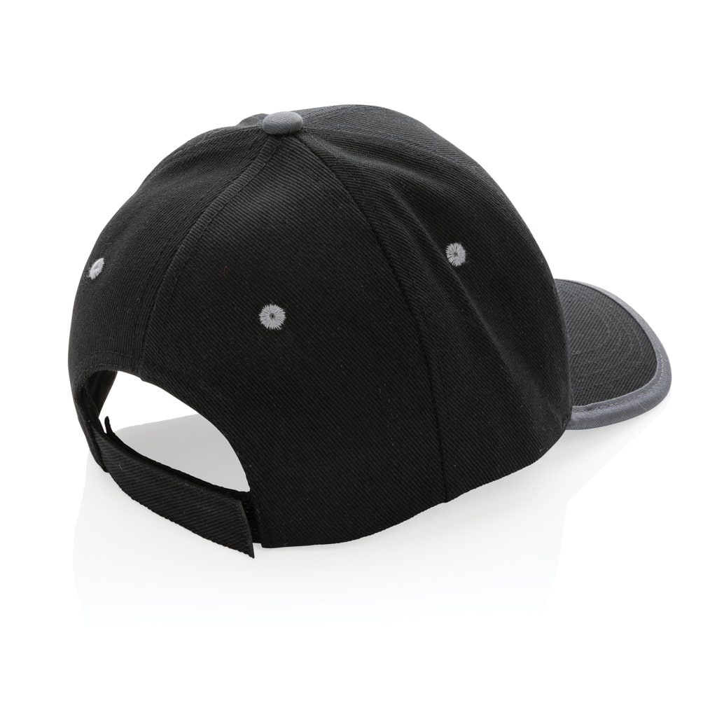 Découvrez la casquette contraste 6 panneaux coton recyclé Impact AWARE™, un objet publicitaire durable et responsable pour valoriser votre marque.