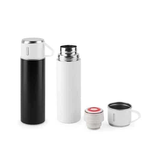 Conçue pour conserver boissons chaudes ou froides grâce à sa double paroi isolante, cette bouteille de 490 ml est idéale pour accompagner collaborateurs et clients au quotidien. Sa taille compacte (ø67 x 230 mm) assure un transport facile, tandis que le couvercle convertible facilite le partage lors de pauses ou réunions.