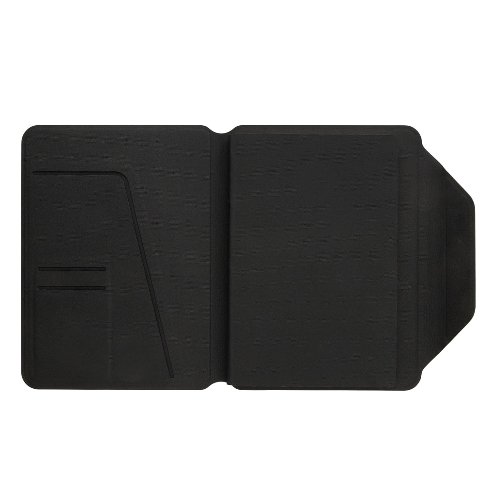 Conçu pour accueillir vos documents au format A5, ce porte-documents dispose de deux fentes pour cartes de visite et d’une pochette intérieure pour organiser efficacement vos supports. Le carnet inclus, muni de 64 feuilles ligné crème certifiées FSC® mix, facilite la prise de notes lors de réunions, salons professionnels ou événements corporate. Sa conception ergonomique garantit un usage confortable et pratique au quotidien.