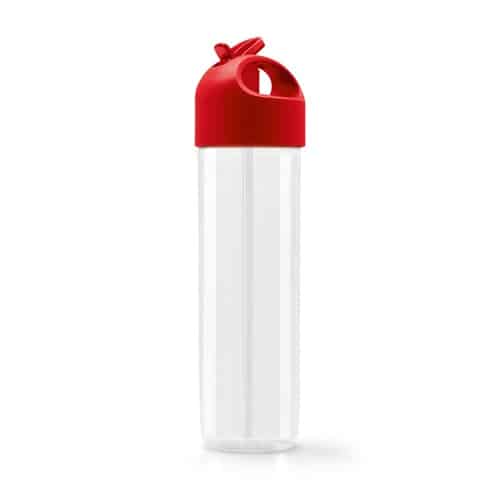 Gourde en PS et PE avec couvercle et embout et paille flexible (à l’interieur) et une capacité jusqu’à 500 mL