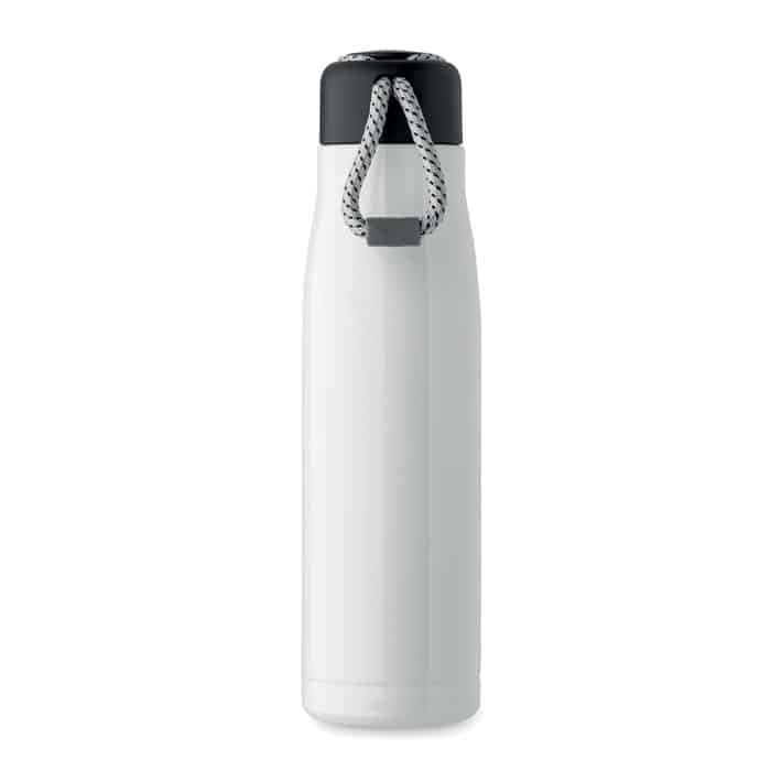 Idéale pour accompagner vos collaborateurs et clients lors de leurs déplacements, la bouteille CORDLE offre un confort d’utilisation optimal grâce à sa poignée intégrée. Sa capacité de 500 ml permet de rester hydraté tout au long de la journée, que ce soit au bureau, en salon professionnel ou lors d’événements outdoor.