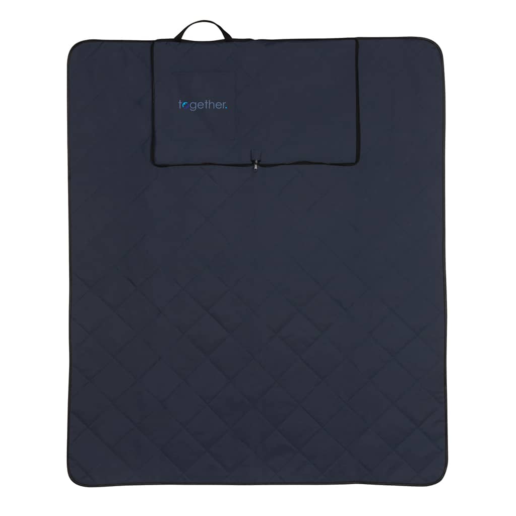Couverture pliable de 145 x 130 cm, avec une grande poche frontale personnalisable.