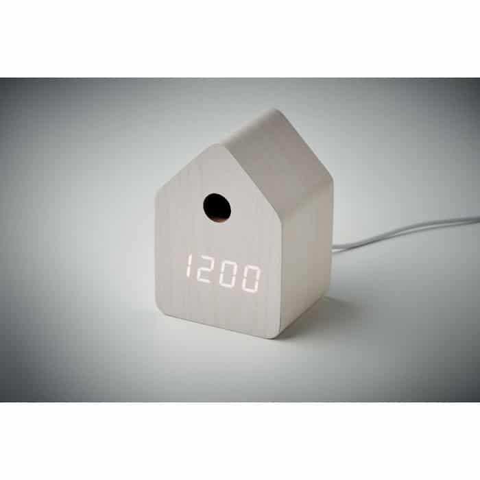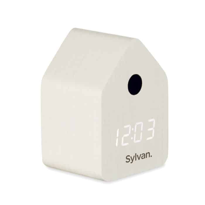 Découvrez l’horloge de bureau CUCKOO avec alarme et affichage de température, un objet publicitaire original et fonctionnel.