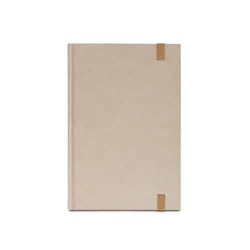 Cahier A5 à couverture rigide en papier de canne à sucre personnalisable, alliant durabilité et élégance pour valoriser votre communication.