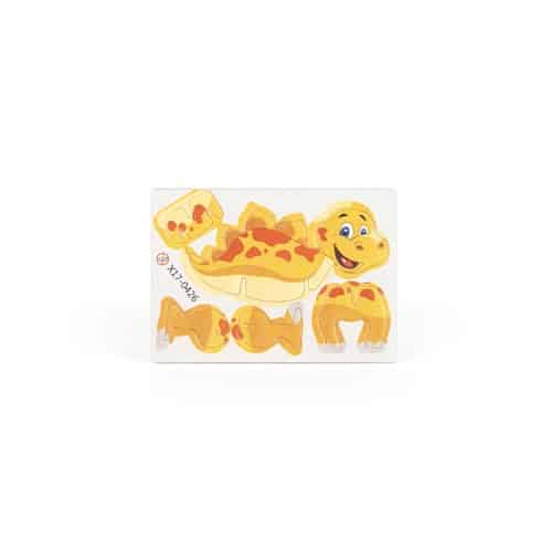Découvrez le puzzle 3D en papier en forme de dinosaure, un objet publicitaire ludique et éducatif pour vos actions B2B.