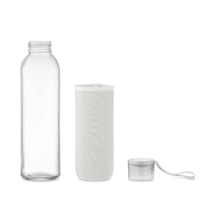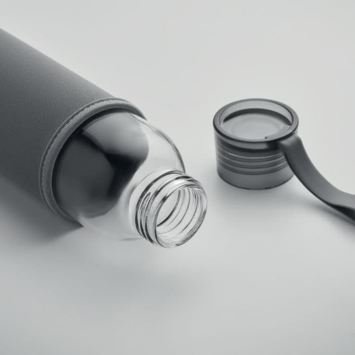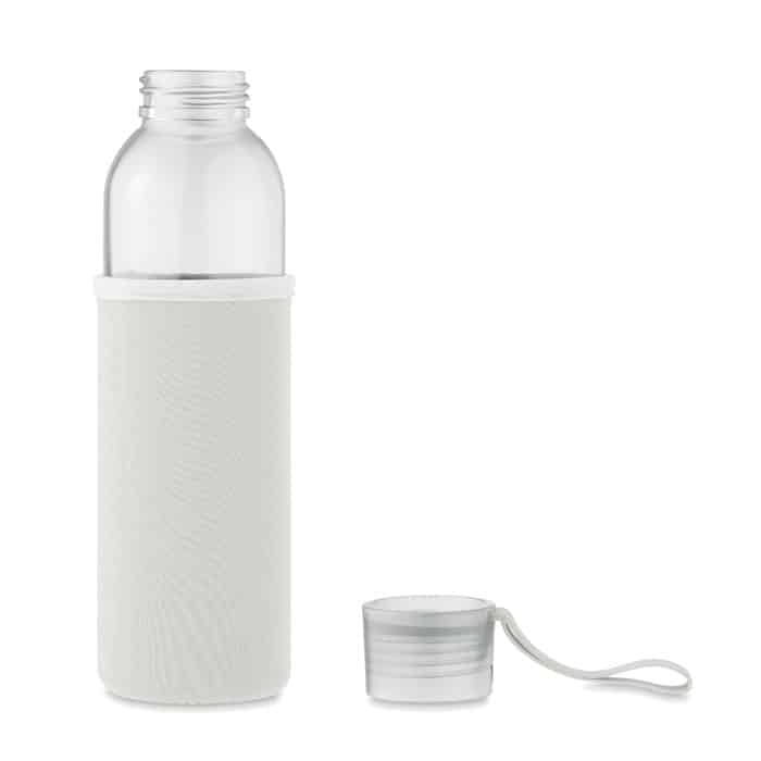 La bouteille EBOR est conçue en verre recyclé, équipée d’une housse en néoprène et d’un couvercle en polypropylène avec un accroche en silicone. Ce choix de matériaux assure une étanchéité parfaite tout en offrant une image responsable de votre marque. Sa capacité de 500 ml est idéale pour une hydratation quotidienne.