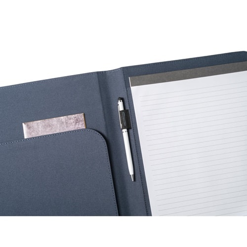 Compact et fonctionnel, ce conférencier intègre plusieurs poches pratiques pour organiser vos cartes de visite, papiers et accessoires. Un porte-stylo (non inclus) complète son aménagement intérieur, ainsi qu’un bloc-notes de 40 pages blanches lignées (60 g/m²), indispensable pour prendre des notes lors de réunions ou salons. Livré dans un sac non tissé, il facilite le transport et la distribution.