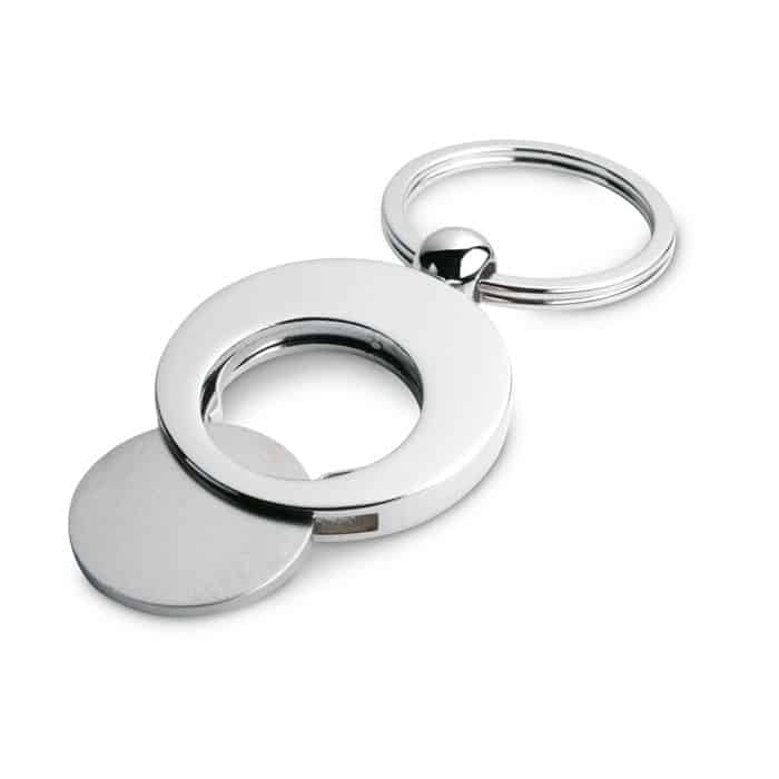 Le porte-clés EURING est un accessoire métallique rond équipé d’un jeton de caddie détachable, idéal pour une utilisation quotidienne. Ce produit allie praticité et élégance, offrant un espace optimal pour personnaliser votre logo ou un message d’entreprise afin de renforcer votre image de marque.