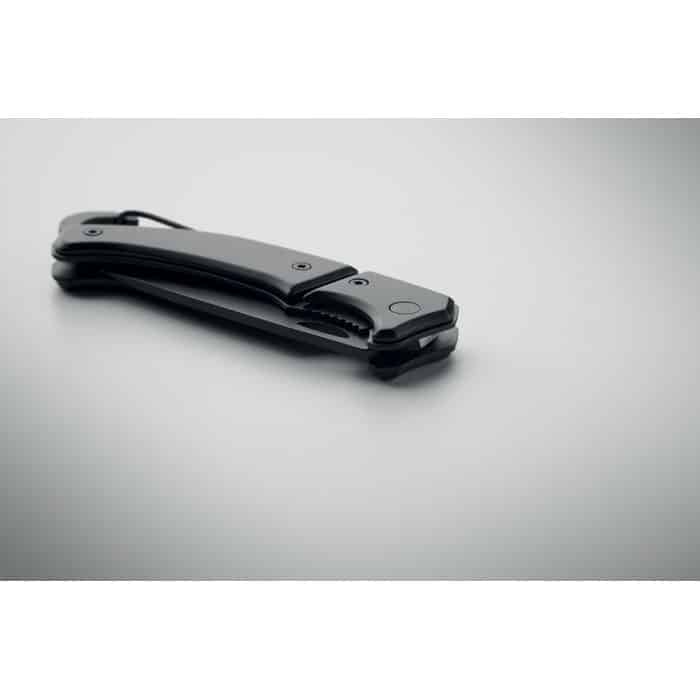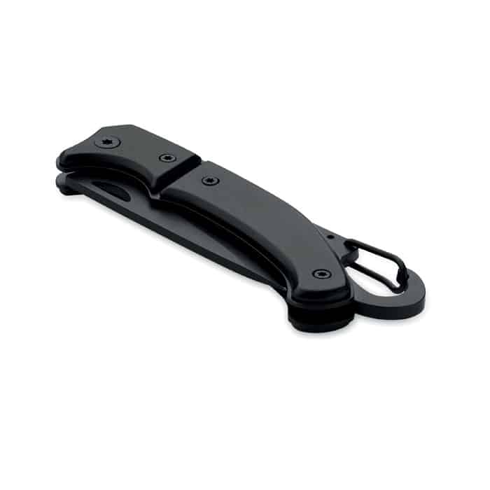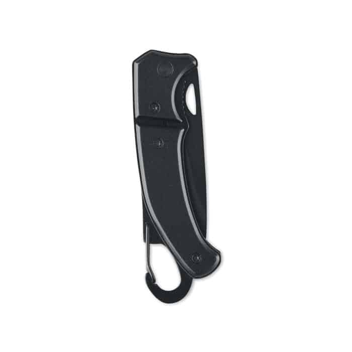Le couteau pliant en aluminium avec mousqueton est un objet publicitaire personnalisable alliant praticité et visibilité.