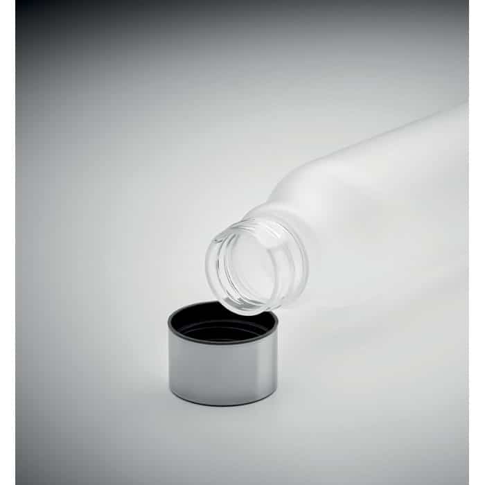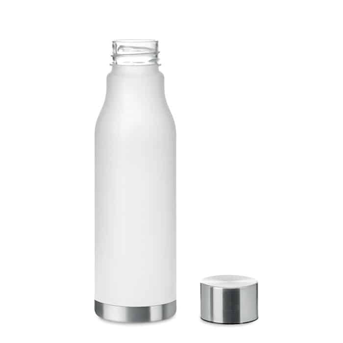 La bouteille GLACIER RPET est conçue en plastique recyclé (RPET) avec une finition caoutchoutée transparente givrée, offrant un toucher agréable et un aspect moderne. Son bouchon en acier inoxydable, équipé d’un couvercle intérieur en RPET et d’un joint en silicone, assure une étanchéité parfaite. Sans BPA, cette bouteille de 600 ml est adaptée aux professionnels soucieux de proposer un cadeau d’entreprise à la fois pratique et respectueux de l’environnement.
