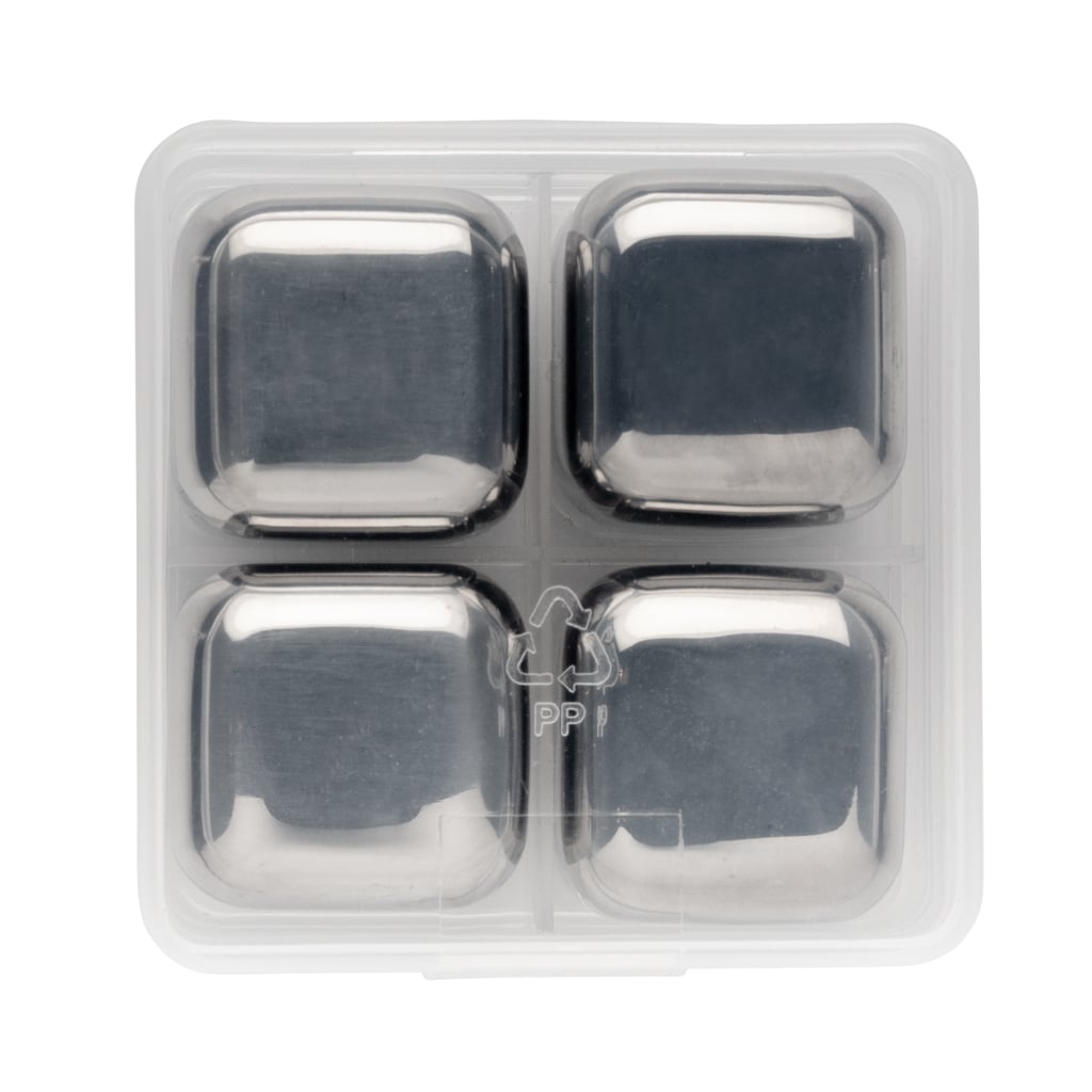 Découvrez les glaçons réutilisables en acier inoxydable 4pcs, idéaux pour rafraîchir vos boissons sans altérer leur saveur.