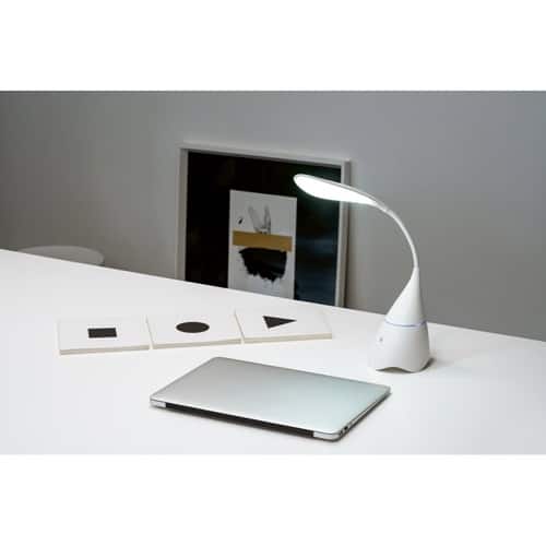 Lampe de bureau avec haut-parleur intégré. Grâce à son bras flexible et à son bouton tactile marche/arrêt, vous pouvez régler l’intensité lumineuse (18 LED) en fonction de vos besoins quotidiens.