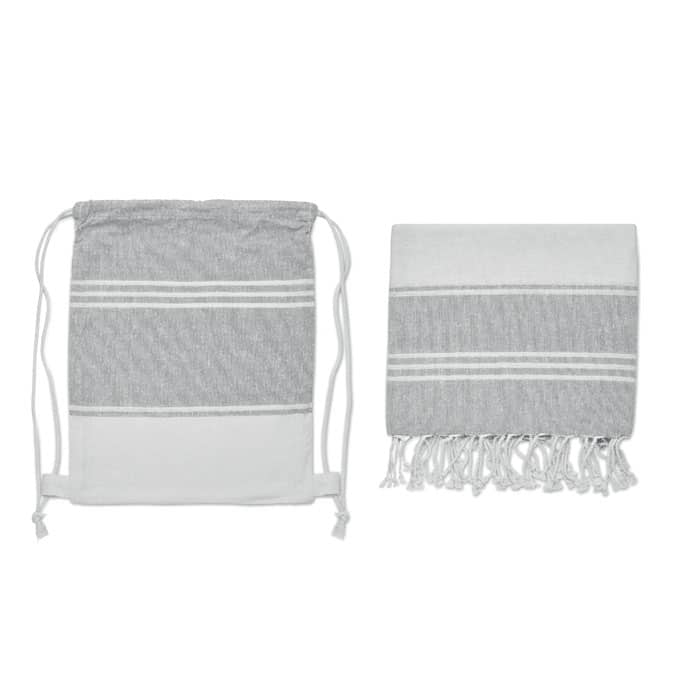 Le set HAMMA associe une serviette hammam et un sac à cordon, parfaits pour vos campagnes promotionnelles. Conçu avec 70% de coton recyclé et 30% de polyester recyclé au grammage de 180 g/m², ce set allie durabilité et qualité. Grâce à ses dimensions généreuses de 90x160 cm, il offre un confort optimal tout en mettant en avant votre marque.