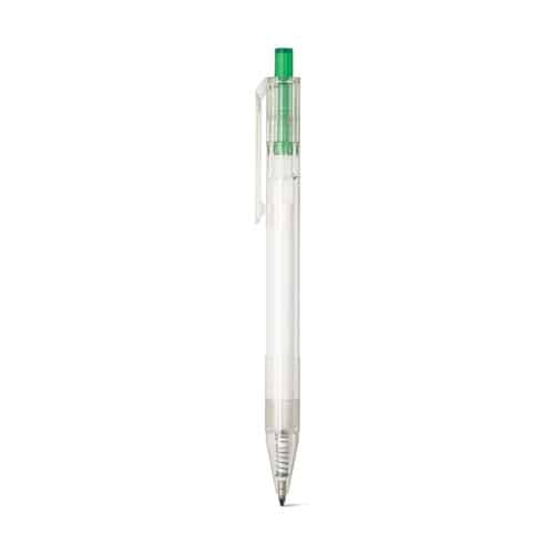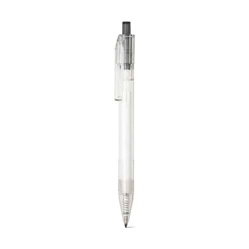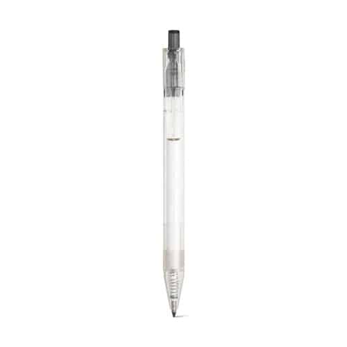 Fabriqué en 100% rPET transparent, ce stylo conjugue respect de l’environnement et esthétique moderne.