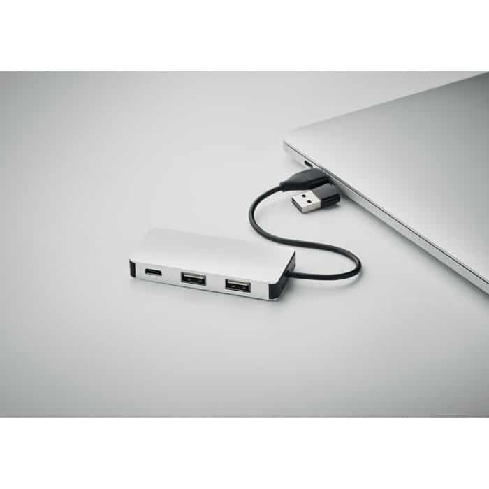 Le câble HUB-C en aluminium recyclé offre une solution de charge polyvalente et durable pour vos besoins professionnels.