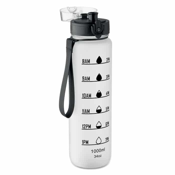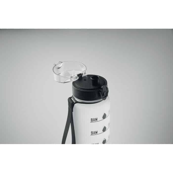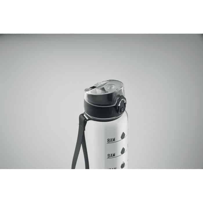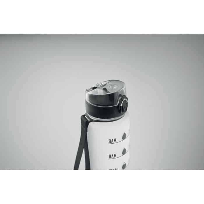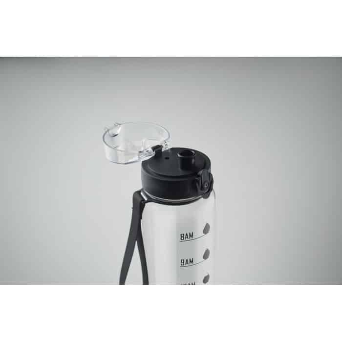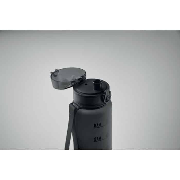 Pratique et ergonomique, cette bouteille se distingue par son ouverture à clapet facile à manipuler d’une seule main, idéale pour une utilisation rapide et sans effort. Son couvercle avec verrouillage de sécurité garantit une parfaite étanchéité pour éviter tout risque de fuite. La sangle de transport facilite le déplacement, renforçant le confort d’utilisation au bureau, en déplacement ou lors d’événements.