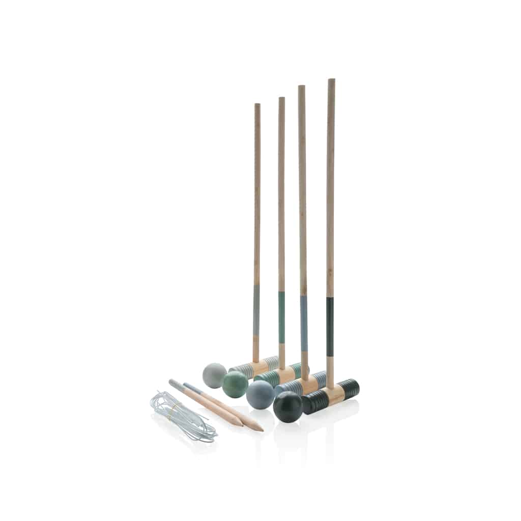Jeu de croquet en bois personnalisé, idéal pour animer vos événements professionnels avec élégance.