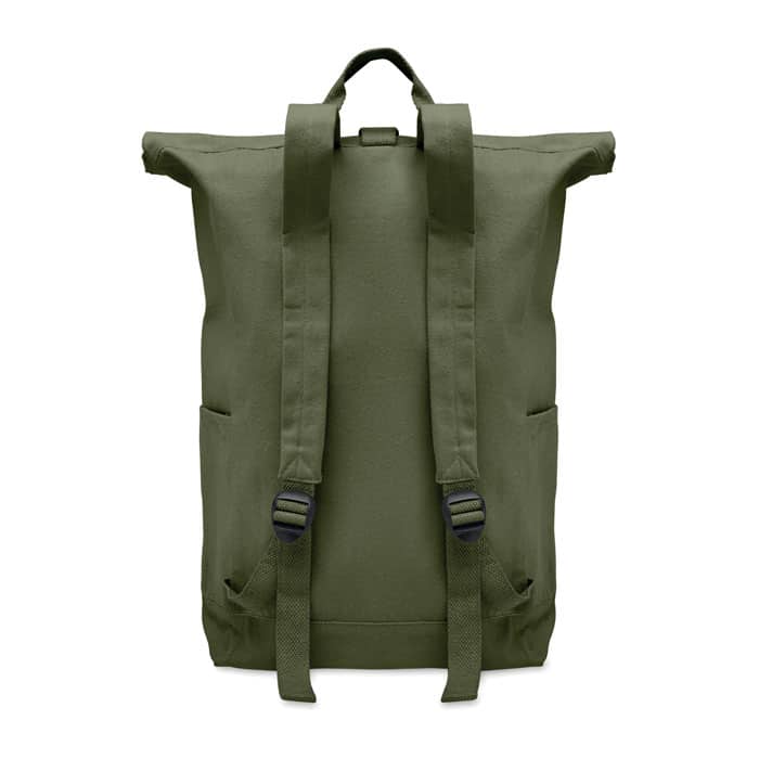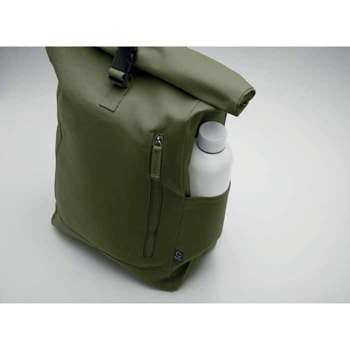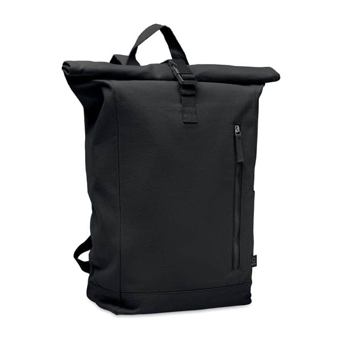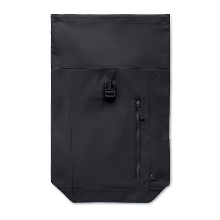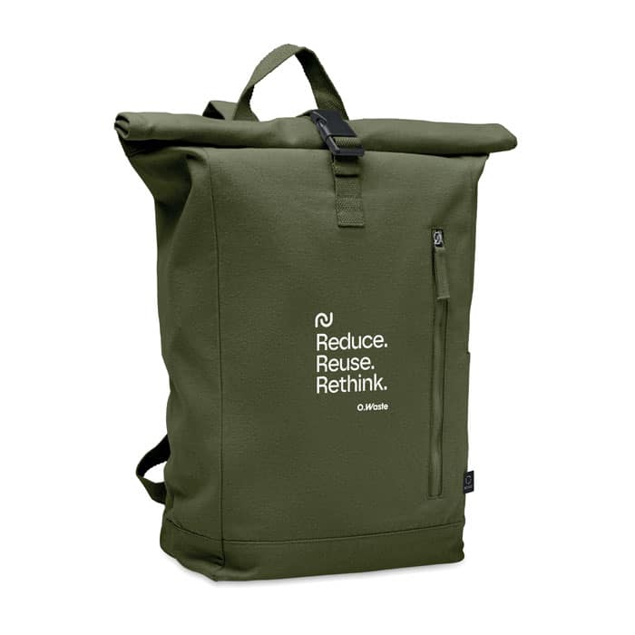 Le sac à dos publicitaire KAMET est conçu en 390 gr/m² de coton recyclé (80%) et polyester recyclé (20%), offrant un équilibre parfait entre robustesse et respect de l’environnement. Son système d’ouverture roll top avec fermeture à scratch garantit une utilisation simple et sécurisée, tandis que la poche zippée frontale permet un accès rapide à vos essentiels. Ce sac à dos est un excellent vecteur de visibilité pour votre marque grâce à sa surface personnalisable.