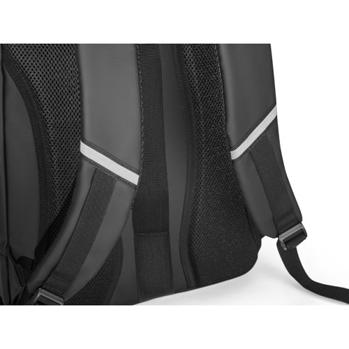 Sac à dos pour ordinateur portable avec revêtement résistant à l’eau, sangles de compression amovibles à l’avant et détails réfléchissants sur les poignées et les sangles, garantissant fonctionnalité et sécurité au quotidien. La finition de ce sac à dos lui confère un toucher doux, rendant son utilisation plus confortable.