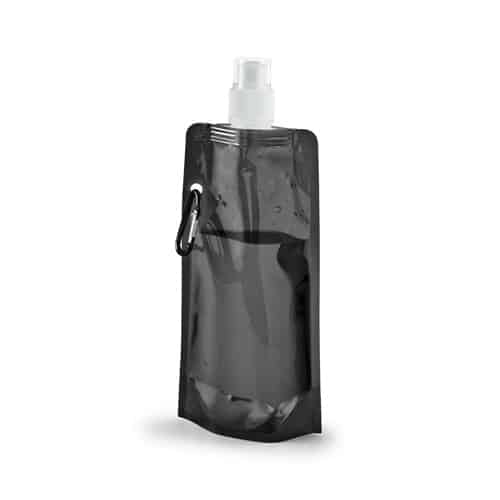Gourde en PE pliable avec embout buccal push-pull. Contient un couvercle transparent et un mousqueton. Capacité jusqu’à 460 mL
