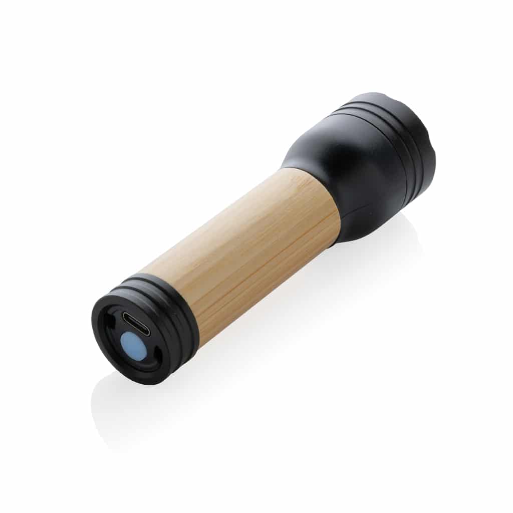 Découvrez la lampe 1W en plastique recyclé RCS et bambou Lucid, un objet publicitaire écologique et rechargeable, idéal pour valoriser votre marque.
